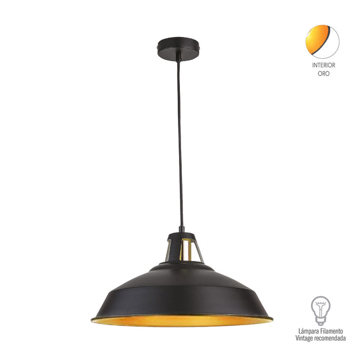 AGORA es una lámpara colgante de interior con acabado negro mate, pensada para espacios que buscan una estética moderna y funcional. Fabricada en lámina de acero, su estructura robusta y limpia la convierte en una opción confiable y decorativa para iluminar desde el techo.
