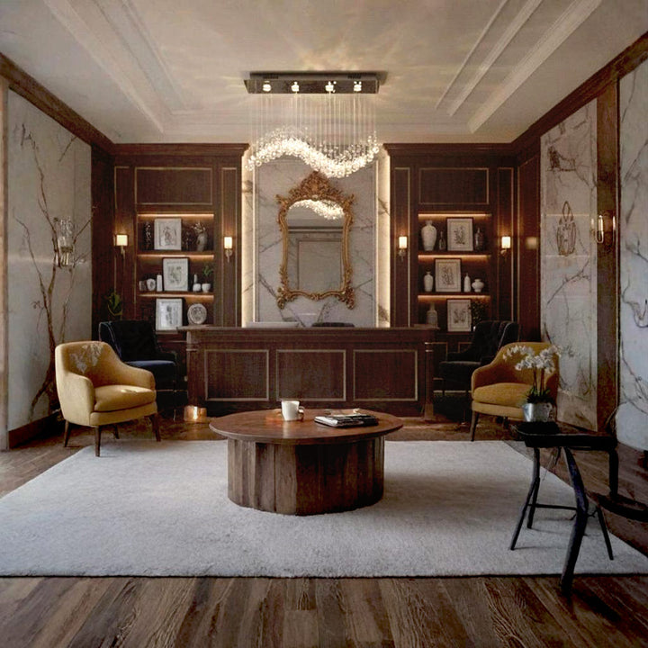 Colgante de Cristal SERENELLA 004, Su brillo da un estilo discreto y glamuroso, permiten la transformación versátil de espacios gracias a la flexibilidad del cristal aportando sofisticación inclusive en espacios pequeños, excelente visibilidad y una óptima iluminación. Los colgantes brindan una experiencia de amplitud y confort en lugares comerciales, hogar, hotelería y salones de eventos, la sensación de una lámpara colgante es acogedora les da un estilo mucho más moderno a las habitaciones.