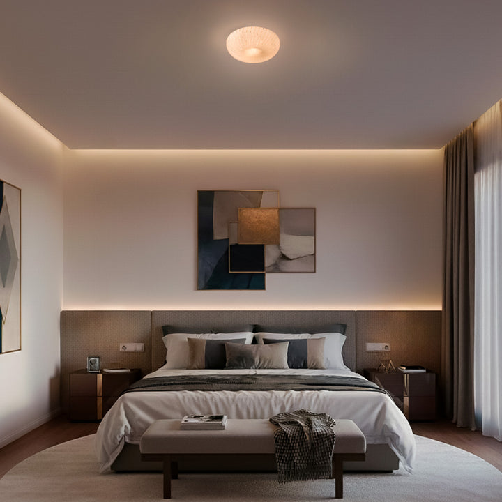 La lámpara de plafón GAMBO 015 ofrece un equilibrio entre elegancia y funcionalidad. Su diseño tipo globo con patrón lineal grabado y acabado brillante crea una iluminación suave y difusa, ideal para ambientes modernos que buscan un toque decorativo discreto.