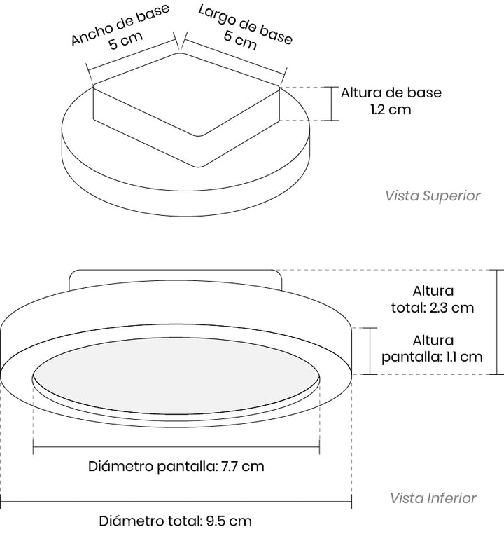 Dimensiones | 9.3 cm (largo) x 9.3 cm (ancho) x 2.3 cm (alto) |
