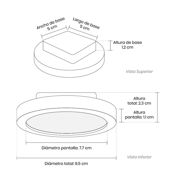 Dimensiones | 9.3 cm (largo) x 9.3 cm (ancho) x 2.3 cm (alto) |