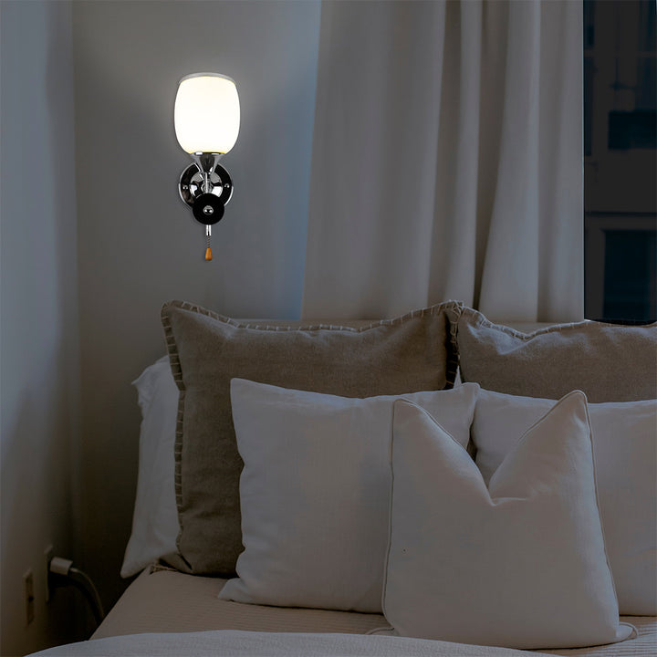 La lámpara de pared Abdera 001 es una excelente opción para aportar iluminación superior en espacios interiores. Su estructura metálica en acabado dorado con pantalla de cristal blanco opalino brinda un toque decorativo elegante y moderno, ideal para ambientes donde se busca calidez y estilo.