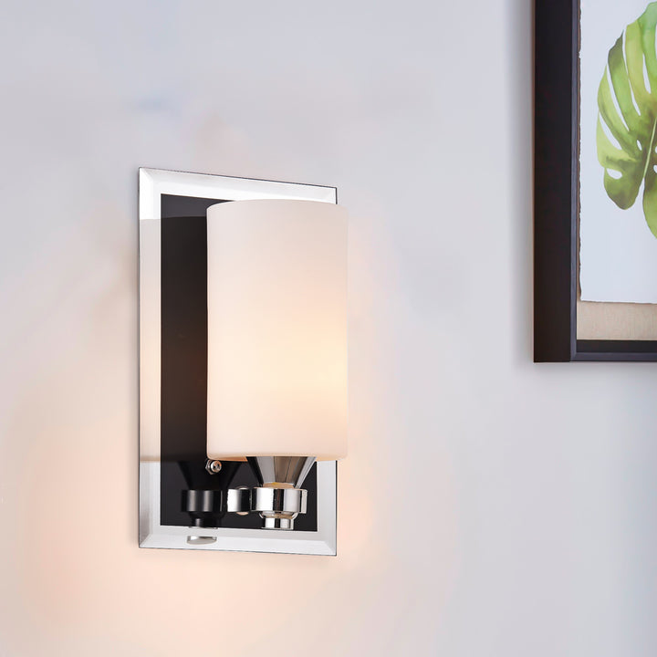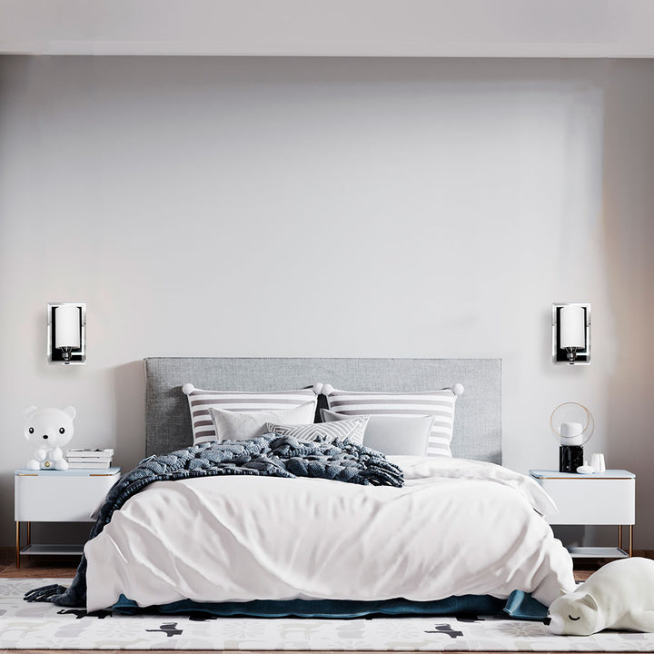 La lámpara para pared Elin es una elegante y funcional pieza de iluminación que combina diseño y practicidad en un solo producto. Su diseño moderno presenta un cuerpo de metal con un atractivo acabado en espejo, lo que le otorga un toque sofisticado y contemporáneo. La pantalla de cristal blanco opalino complementa perfectamente el conjunto, proporcionando una luz suave y difusa que crea un ambiente acogedor y relajante.
