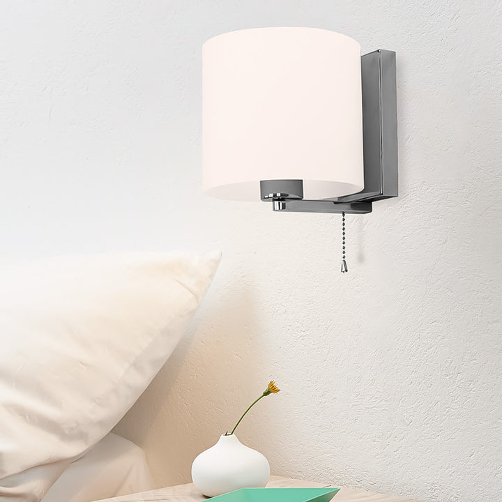 La lámpara de pared KANBUL combina diseño moderno y funcionalidad en una pieza elegante. Su cuerpo metálico acabado cromo y pantalla de cristal blanco opalino ofrecen una iluminación suave y difusa, creando ambientes acogedores en interiores residenciales o comerciales.