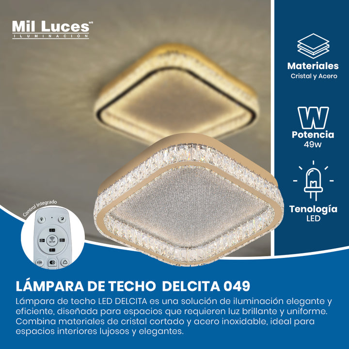 La lámpara de techo DELCITA 049 transforma cualquier espacio con su diseño sofisticado en cristal cortado y acero inoxidable. Su acabado en tono dorado aporta una estética moderna y elegante que complementa interiores contemporáneos con un toque de distinción. Gracias a su iluminación LED ajustable, puedes crear desde ambientes cálidos hasta una luz brillante y vibrante, todo con un solo control. Es la elección perfecta para quienes buscan estilo, funcionalidad y un ambiente que destaque.
