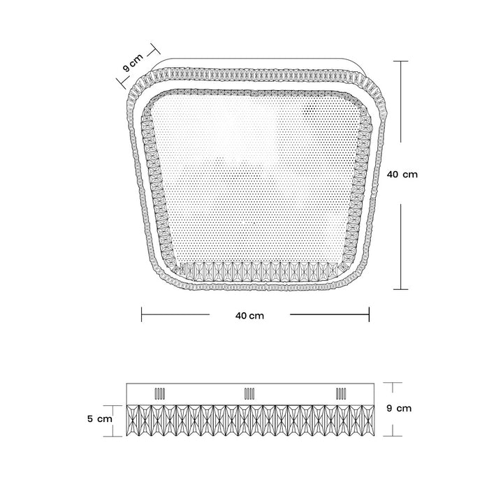 Dimensiones | 40 cm (largo) x 40 cm (ancho) x 9 cm (alto) |