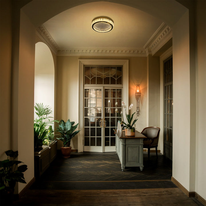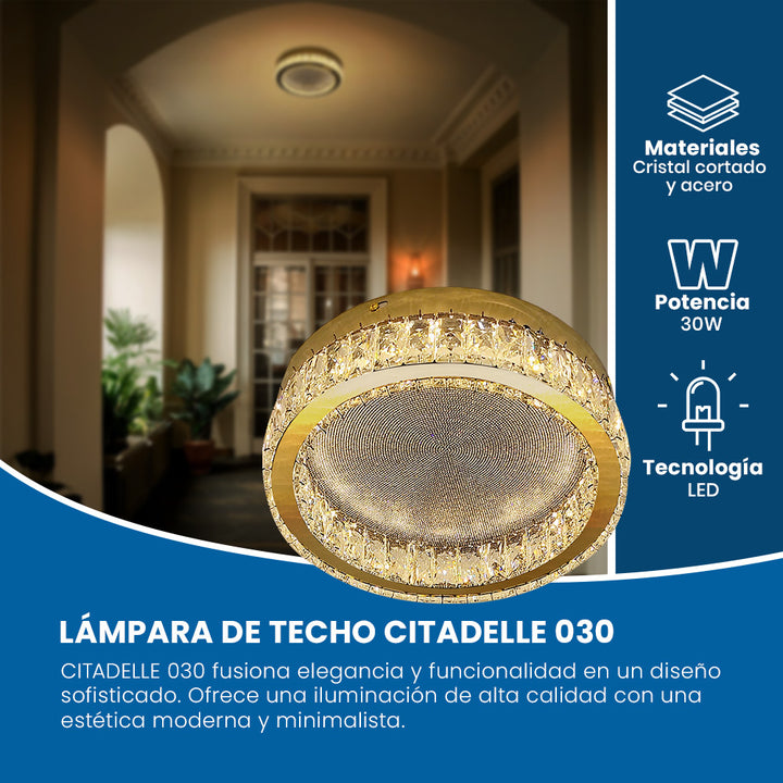 La lámpara de techo CITADELLE 030 es una joya de diseño contemporáneo. Con un elegante acabado dorado y materiales premium como el cristal cortado y el acero inoxidable, esta pieza transforma cualquier ambiente en un espacio lleno de distinción. Su luz LED uniforme y antirreflejo no solo ilumina, sino que realza la estética del entorno con calidez y modernidad. Es la mezcla perfecta entre lujo sutil y funcionalidad duradera.