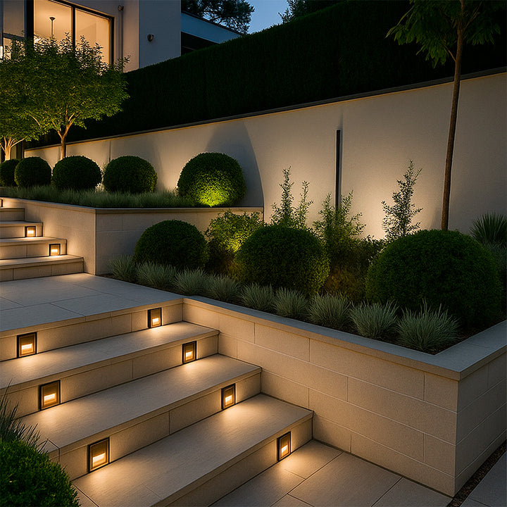 La lámpara empotrada exterior KRASNYY 001 combina diseño moderno y discreto con tecnología LED integrada. Fabricada en polipropileno y aluminio en acabado satinado gris/negro, ofrece una luz cálida de 3000K que realza la arquitectura y aporta seguridad y visibilidad en áreas de tránsito.