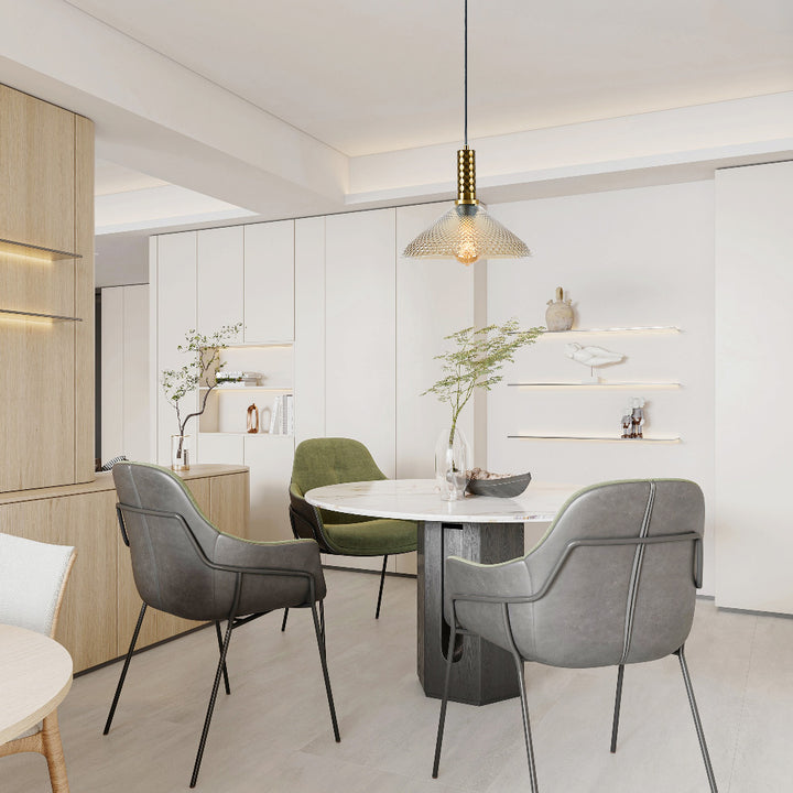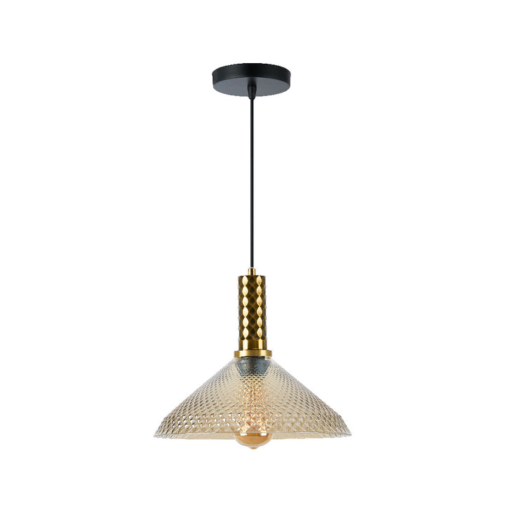La lámpara colgante HOMAM en acabado dorado con pantalla estriada de cristal ámbar de 30 cm combina elegancia y calidez, creando un punto focal decorativo en cualquier espacio. Su suspensión ajustable de hasta 1.20 m permite adaptarla a diferentes alturas y estilos, convirtiéndola en una pieza versátil para proyectos modernos o clásicos.